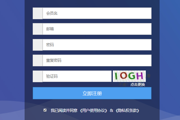 首先,在任意页面的上部点击“注册”,跳转到注册新用户的页面,按照提示填写好个人资料,阅读并同意服务条款后点击“同意服务条款并注册”